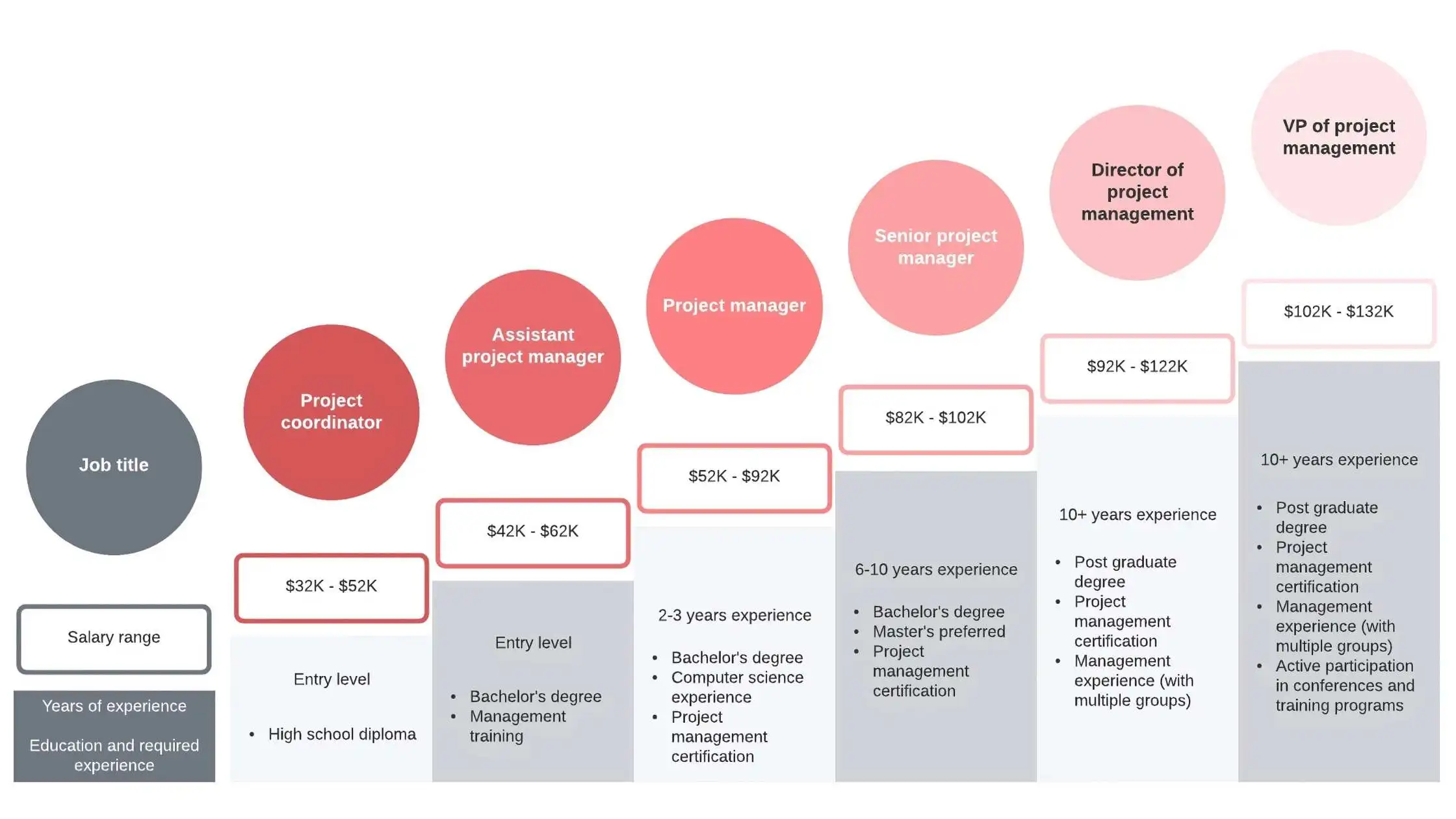 At the beginning of the project manager career path there are some basic positions which are similar to the entry level positions such as project coordinator and junior project manager that focus on tasks, schedules and status reporting.
